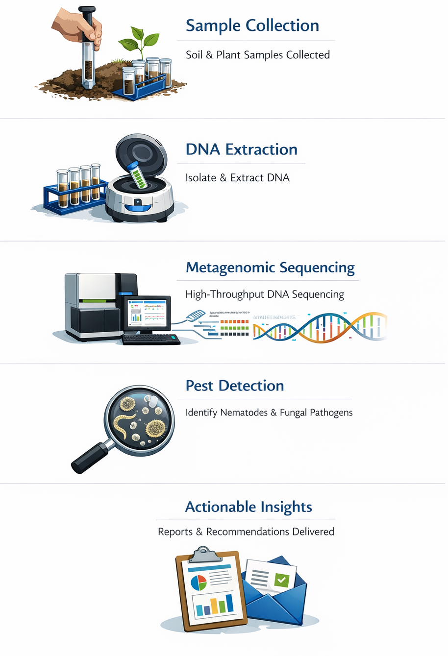 Using advanced NGS and metagenomic analysis, we will help you uncover what’s really happening in the incredible ecosystem beneath your feet. Our insights empower you to make informed agricultural decisions based on the actual needs of your soil—and the microscopic life within it—rather than relying on guesswork, over-fertilizing, or unnecessary pest treatments.